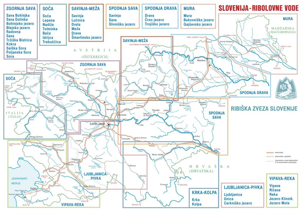 Zemljevid ribolovnih območij je izdelala Ribiška zveza Slovenije.